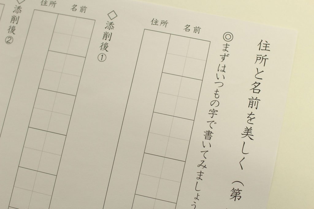 個人別指導(マンツーマン)で、ご自身の住所を美しく書くコツを指導いたします。